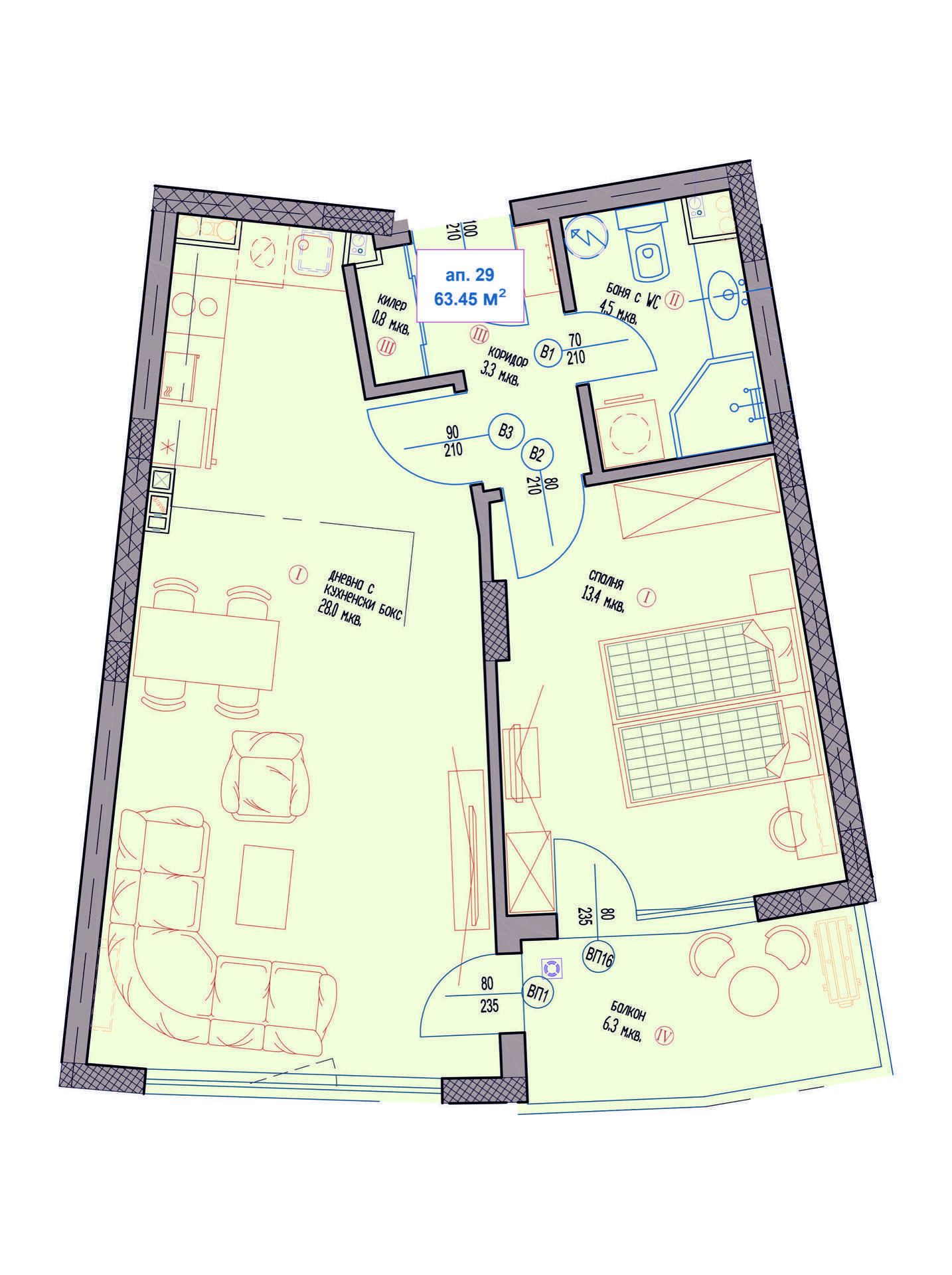 63.45 m2Чиста площ
