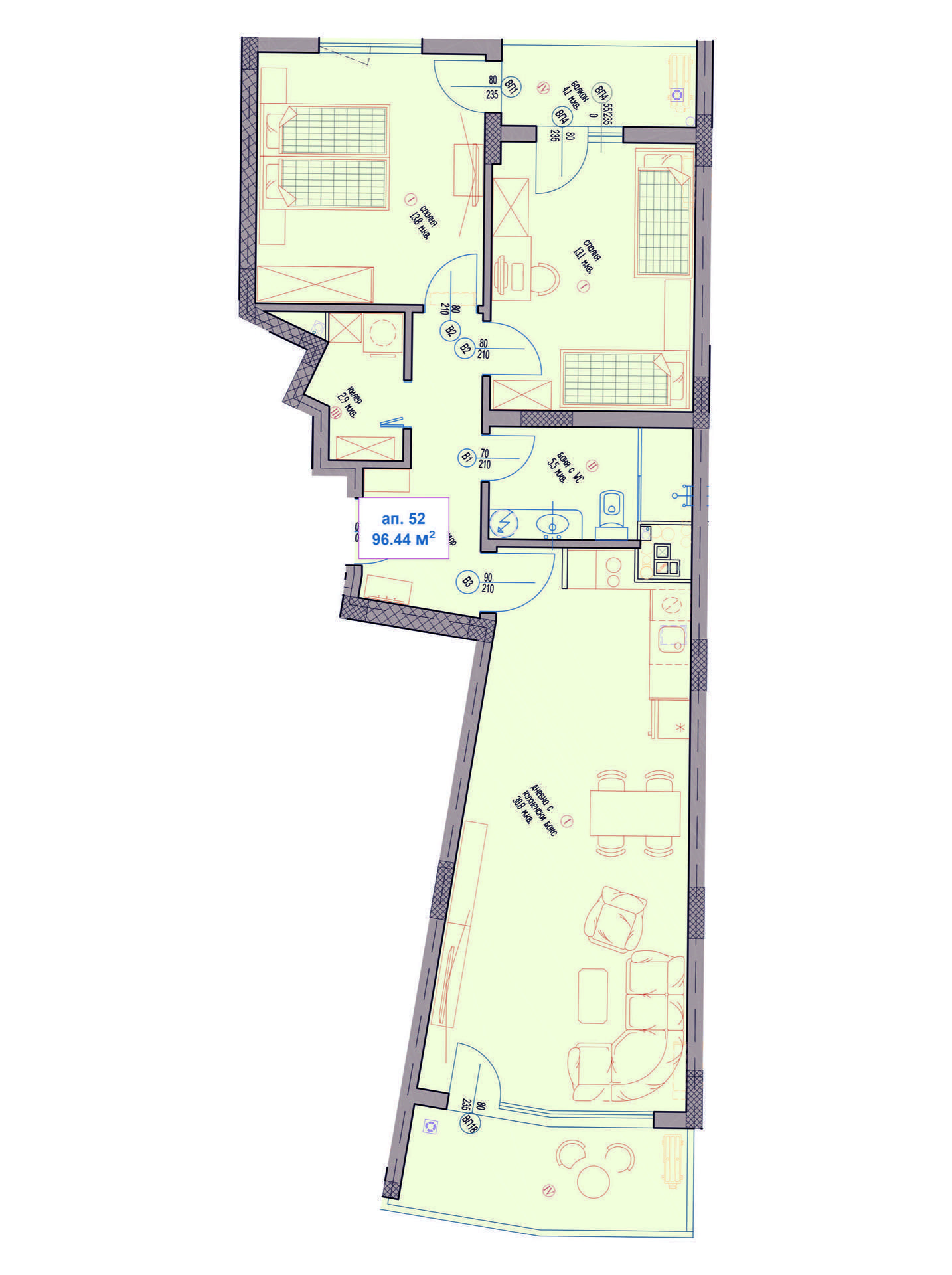Апартамент - Дневна с кухненски бокс, две спални, баня с тоалетна, килер,коридор, два балкона