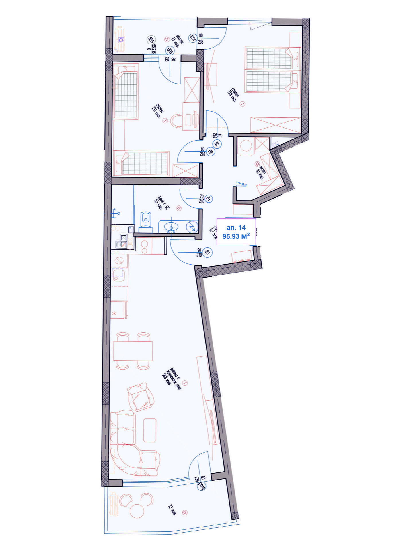 Апартамент - Дневна с кухненски бокс, две спални, баня с тоалетна, килер,коридор, два балкона