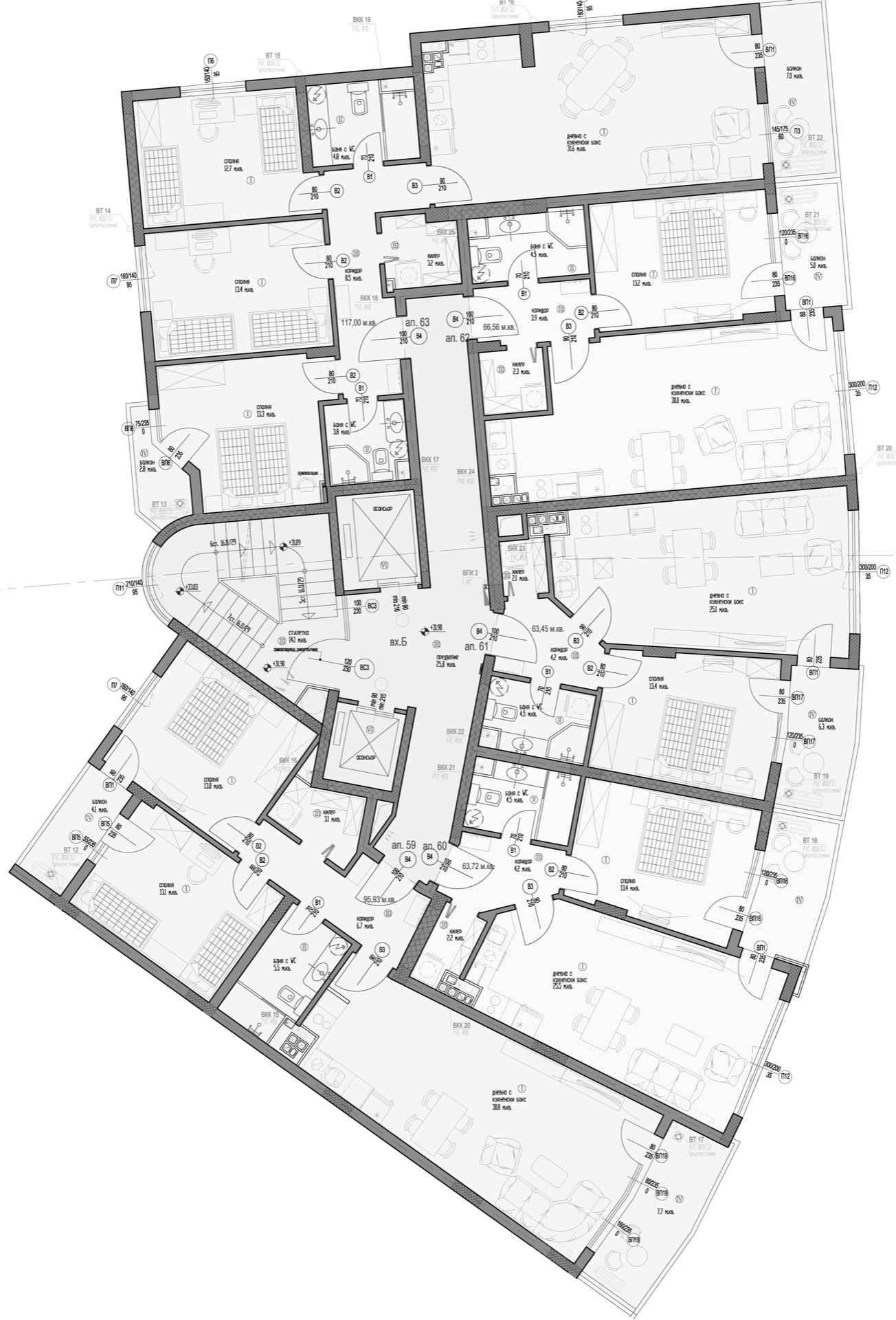 Апартамент - Дневна с кухненски бокс, три спални, баня с тоалетна,баня с тоалетна, килер,коридор, два балкона